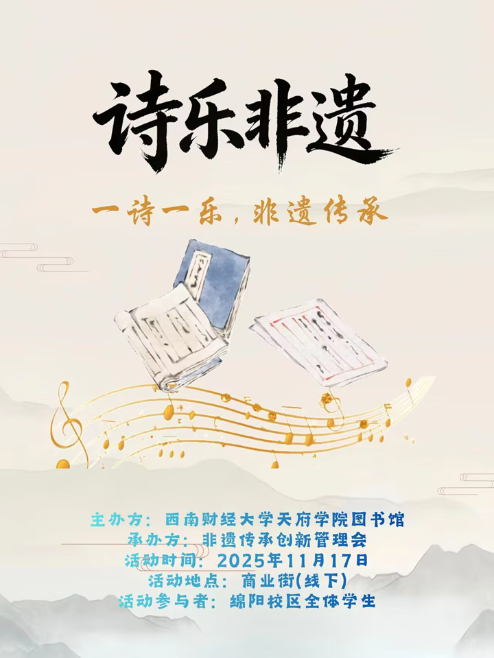 为增进同学们对非遗知识的了解,在趣味互动中近距离触碰非遗、深度感知非遗魅力,12月17日,西南财经大学天府学院图书馆非遗传承创新管理会开展“诗乐寻非遗”活动。